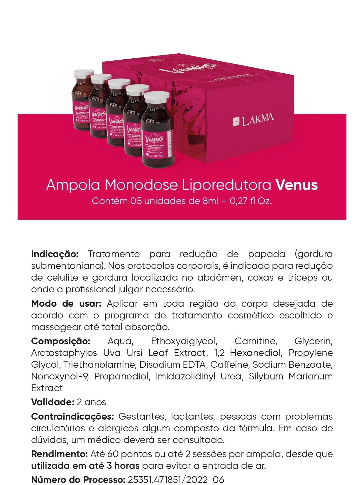 AMPOLA LIPOREDUTORA VENUS 5 AMPOLAS 8ML LAKMA