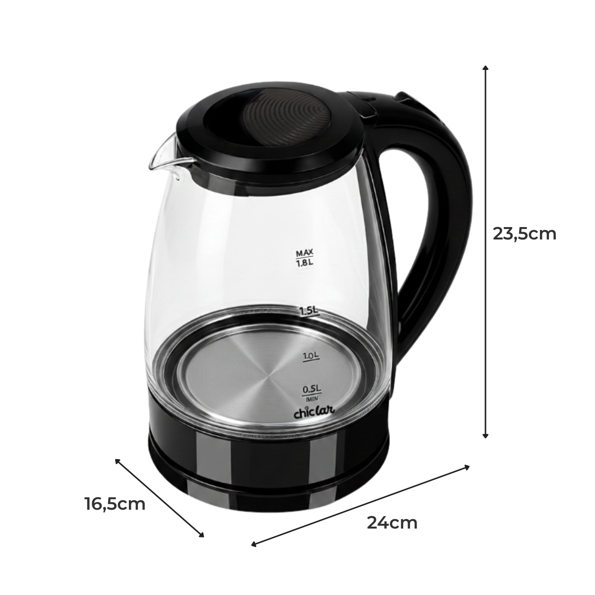 Se você busca praticidade, rapidez e elegância na sua cozinha, a Chaleira Elétrica Glass Chic Lar é a escolha perfeita! Com design moderno em vidro temperado, iluminação LED e capacidade de 1,8L, ela ferve sua água em poucos instantes — ideal para cafés, chás, sopas e seu dia a dia corrido.