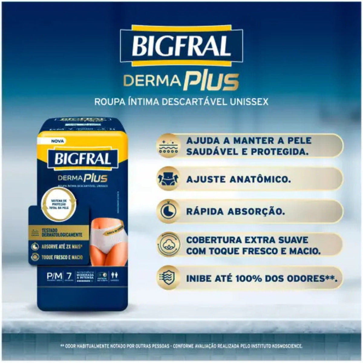 A Fralda Bigfral Roupa Íntima Derma Plus Tamanho P/M foi desenvolvida para oferecer a combinação perfeita entre conforto, proteção e cuidado com a pele para adultos com incontinência urinária leve a moderada.