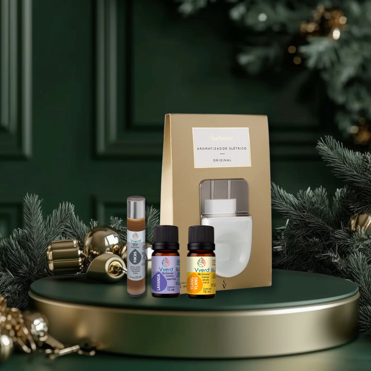 Com óleos essenciais puros, roll-on calmante e aromatizador elétrico, ele cria uma atmosfera acolhedora que reduz estresse, acalma a mente e prepara o corpo para um sono verdadeiramente restaurador.