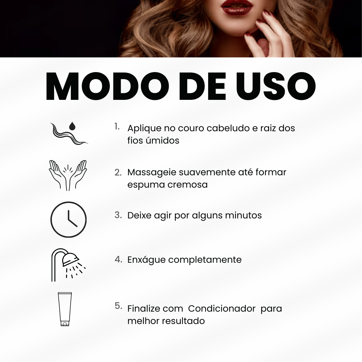 Como pós-químico: Finalize seu processo químico, enxágüe totalmente, tire o excesso de umidade e aplique o produto.