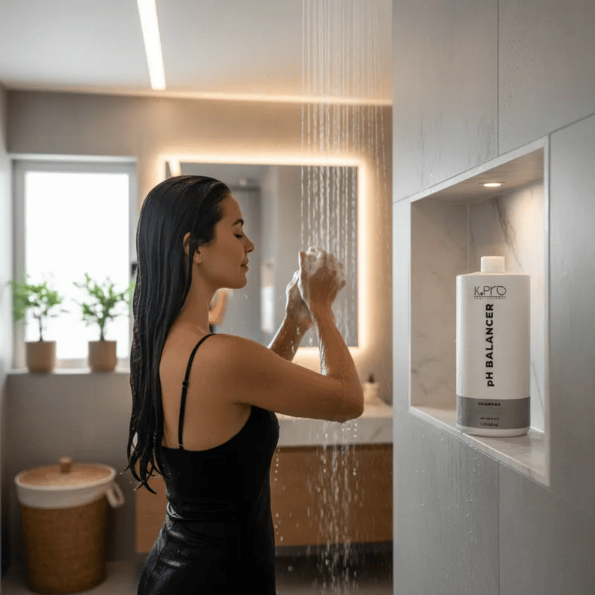 Para hidratação: Antes da hidratação, mas após lavar os cabelos, tire o excesso da umidade e aplique o K. Pro pH Balancer mecha a mecha.