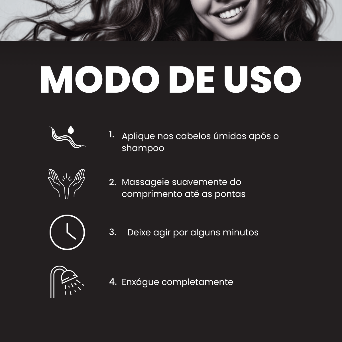 Modo de usar: após lavar os cabelos com shampoo, aplique o condicionador do comprimento às pontas. Massageie suavemente, deixe agir por alguns minutos e enxágue bem.